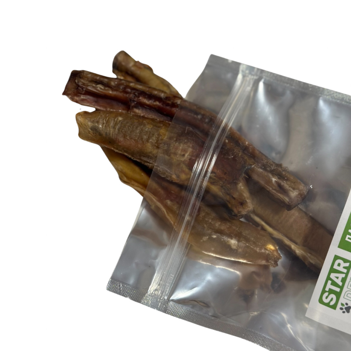 Пеніс яловичий — це натуральні смаколики для собак у вигляді висушених шматочків яловичого кореня. Вони мають специфічний аромат, притаманний цьому субпродукту. Тверді та міцні, такі ласощі дуже довго гризуться.