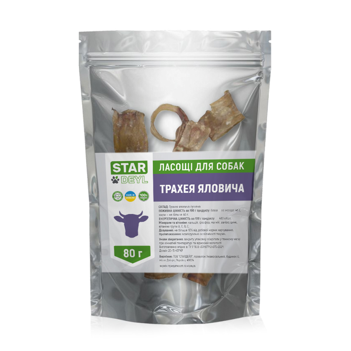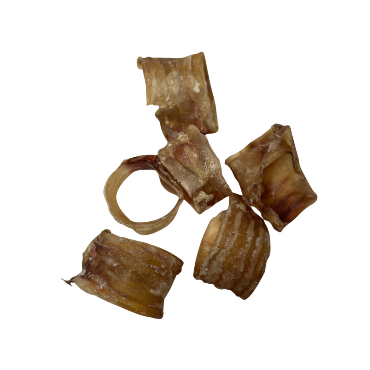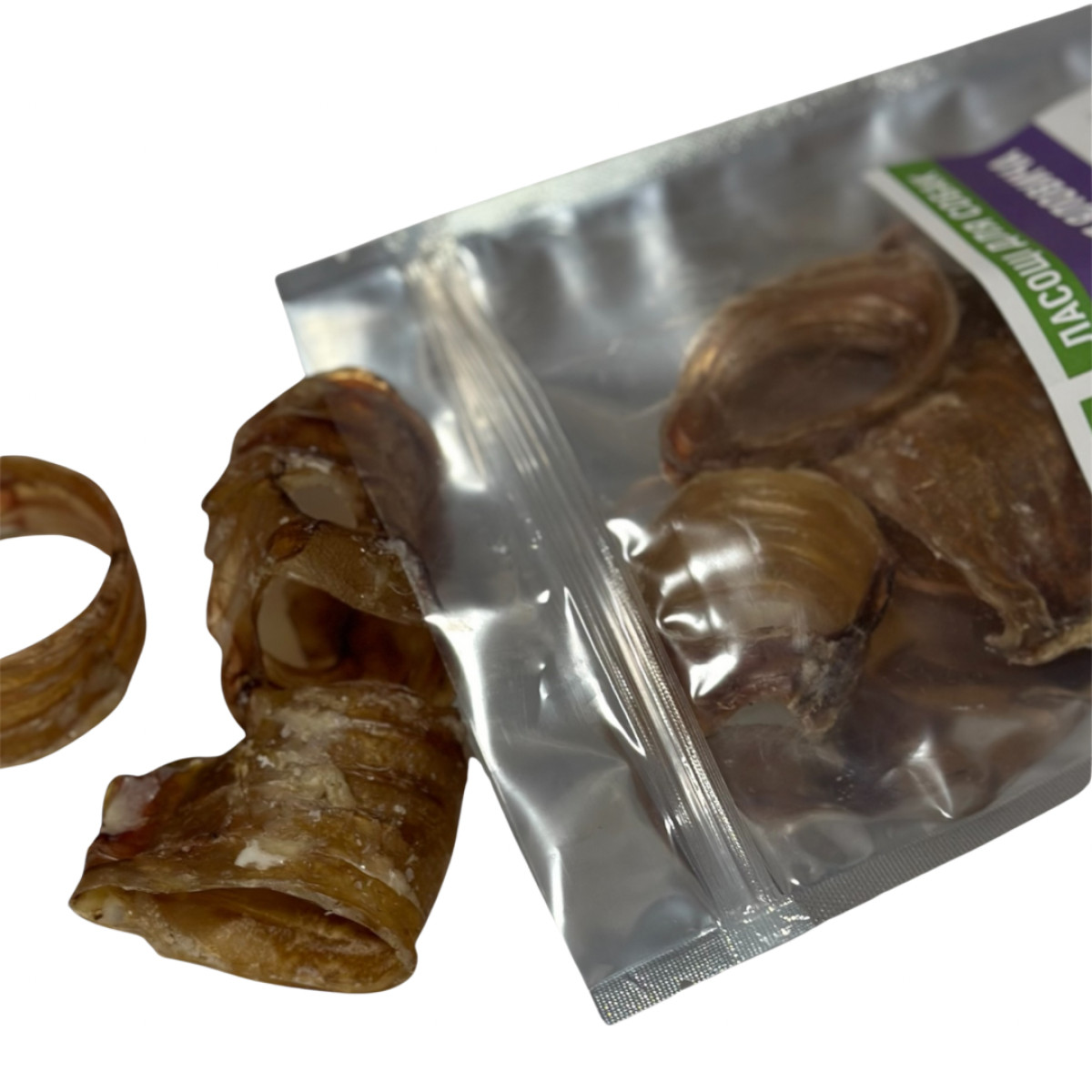 Ласощі "Трахея кільцями" дуже корисні для зубів та хрящової тканини. Вони не мають вираженого аромату. Колагенові волокна, що містяться у складі трахеї, позитивно впливають на опорно-рухову систему. Ці ласощі також використовуються для чищення зубів. Нарізка кільцями дозволяє зручно їх вживати собакам малих порід.